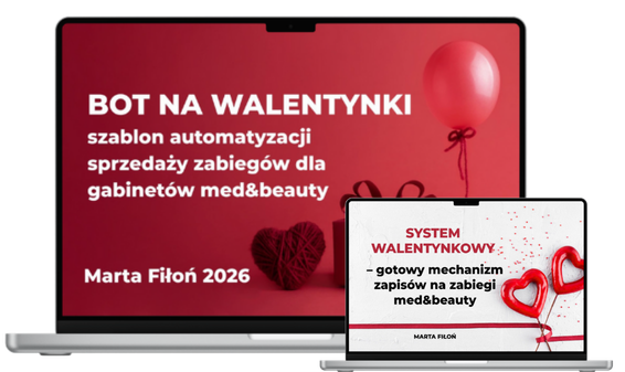 Walentynkowy System jednocześnie zwiększa sprzedaż zabiegów, liczbę powrotów klientek i ilość opinii – bez dodatkowych kampanii i chaosu.